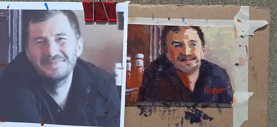 Ultramarijn en karmijn vormen een prachtige kleurenmix, maar ohhhh, die schildersezelfoto. Glanzend glanzende schittering.