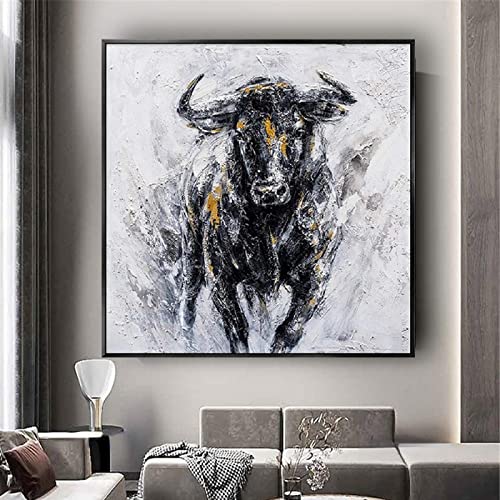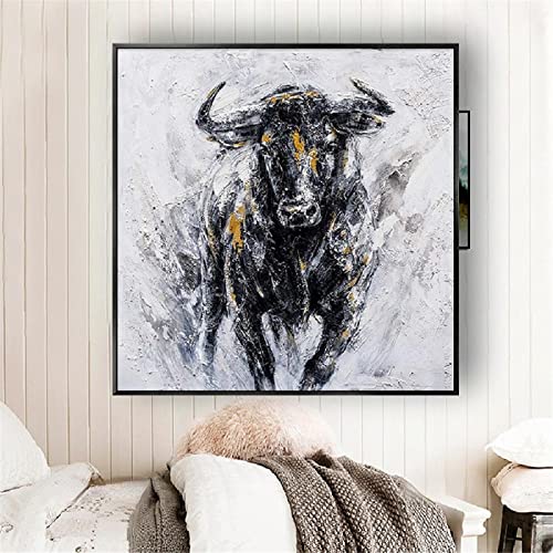 Specificaties: Abstract Wall Art Decor Woonkamer Dier Olieverfschilderij Spaanse Stier Muur Art Foto Cartoon Koe Op Canvas Schilderijen 80x80cm (31x31in) Met Frame