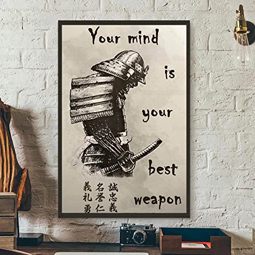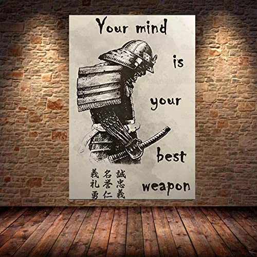 Specificaties: Bushido Samurai Zwaard Canvas Schilderij Japanse Samurai Quotes Posters Uw Geest Is Uw Beste Wapen Wall Art Decor 70x100cm Frameloze
