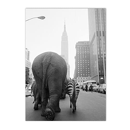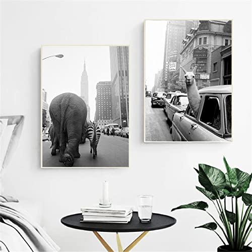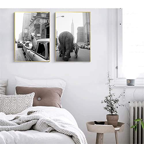 GSHRED Zwart En Wit Auto Alpaca Poster Straat Zebra Olifant Wall Art Canvas Schilderij Dier Print Nordic Wall Pictures Home Decor Unframed 60 × 80 cm × 2 stks