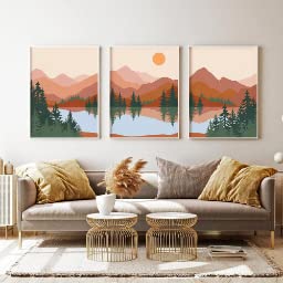 Specificaties: Mid Century Wall Art Boho Abstract Mountain Lake Bomen Poster Print Nordic Foto Natuur Landschap Canvas Schilderij Woonkamer 50x70cmx3 Unframed