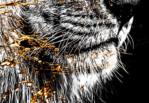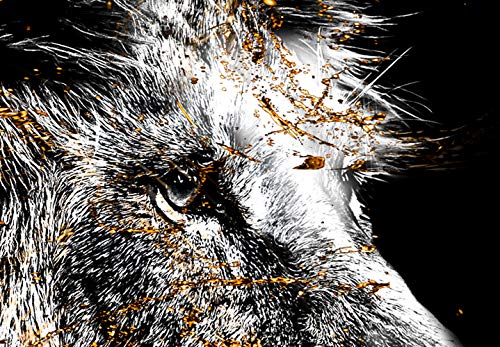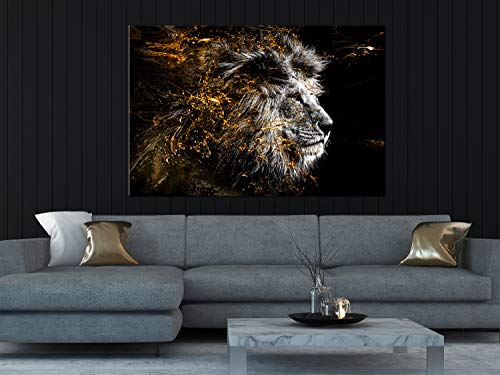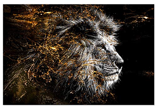 murando Schilderij op vlies canvas Leeuw 120×80 cm Print Wandschilderij 1 delen Canvasfoto Print Wandfoto Kunstdruk Woonkamer Decoratie Wanddecor – Portret Dier zwart goud grijs Abstract g-C-0351-b-a