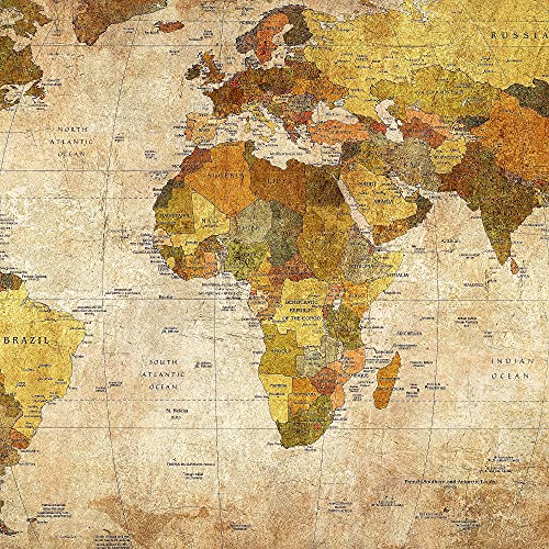 Specificaties: Schilderij Wereldkaart Modern Schilderijen – 100% Made In Germany – Vintage antiek goud Hal 104015a