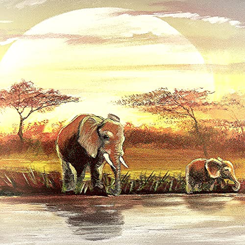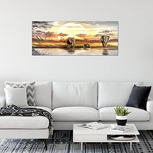 Specificaties: Schilderijen Afrika Olifant Een Stukje Modern Fleece Niet-geweven Canvas Huiskamer Hal Landschap Grijs Geel 000712a