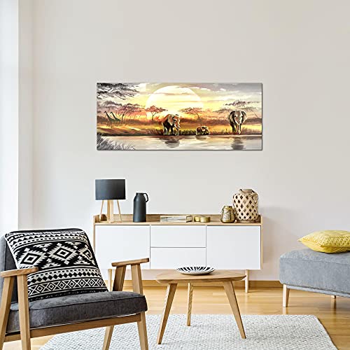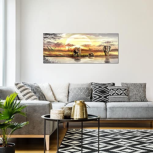 Schilderijen Afrika Olifant Een Stukje Modern Fleece Niet-geweven Canvas Huiskamer Hal Landschap Grijs Geel 000712a