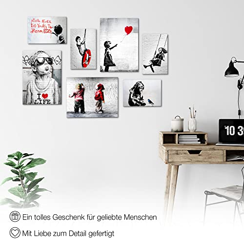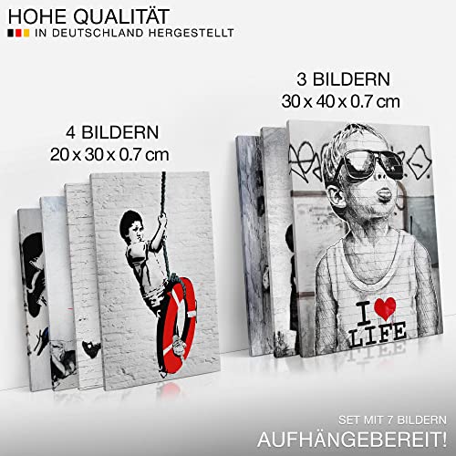 Schilderijen Set – KLAAR OM OP TE HANGEN – Foto Muur – Banksy Collage – 7 Delen – N003171a