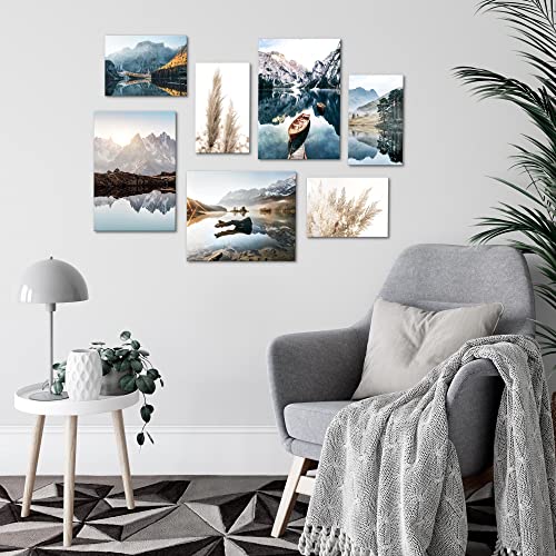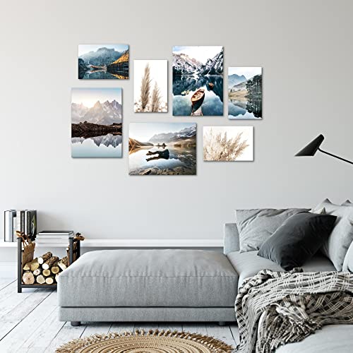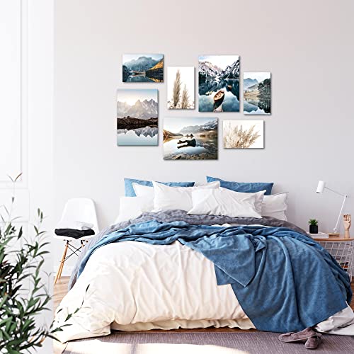 Specificaties: Schilderijen Set – KLAAR OM OP TE HANGEN – Foto Muur – Meer Bergen Blauw – 7 Delen – N003671a