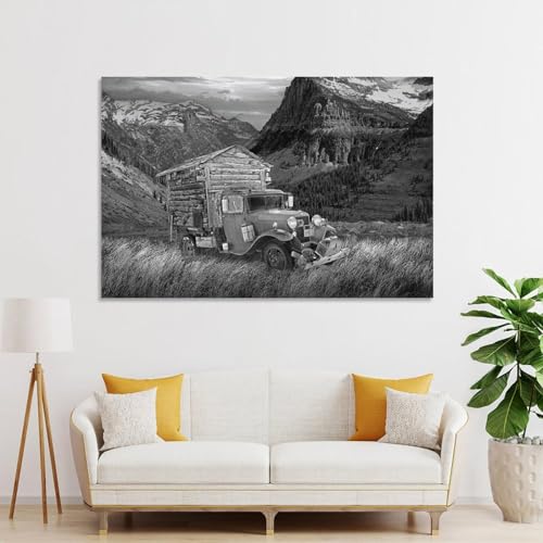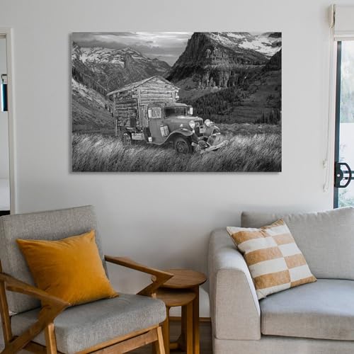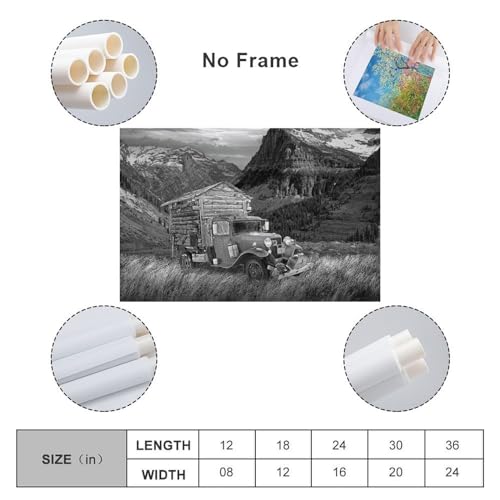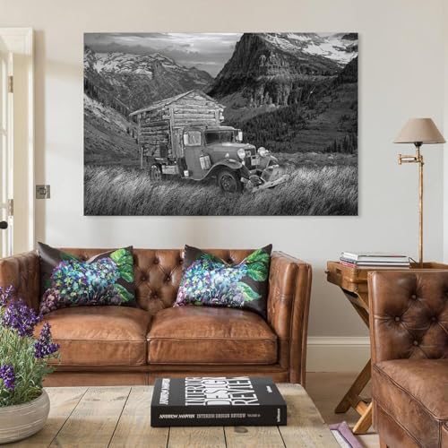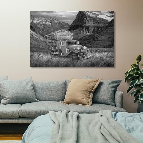 Specificaties: Vintage poster zwart-wit rotsachtige bergen vroege camper kantoor thuis eetkamer decor muurkunst schilderijen canvas muurdecoratie woondecoratie woonkamerdecoratie esthetische prints 60 x 90 cm (24 x