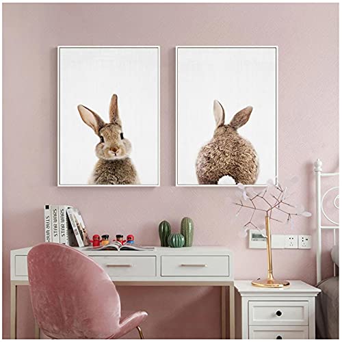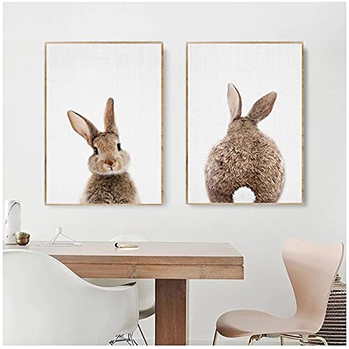 Canvas schilderij afdrukken dier bruin konijn poster muur foto woonkamer decoratie schilderij (30x40cm) × 2 stuks frameloze