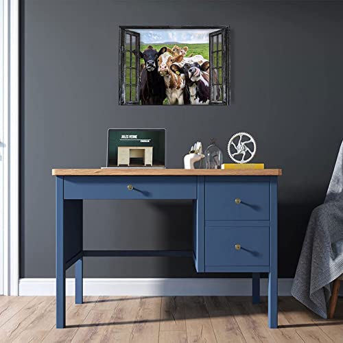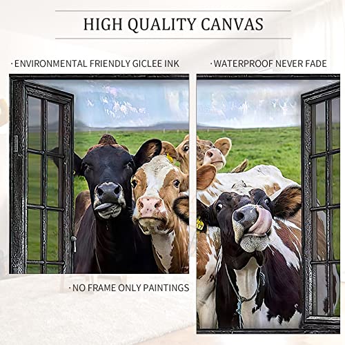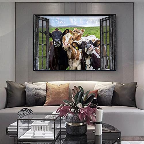 Koe op raam canvas schilderij vintage boerderij poster afbeeldingen wandafbeeldingen woonkamer slaapkamer huis decoratie zonder lijst. (90x60cm)